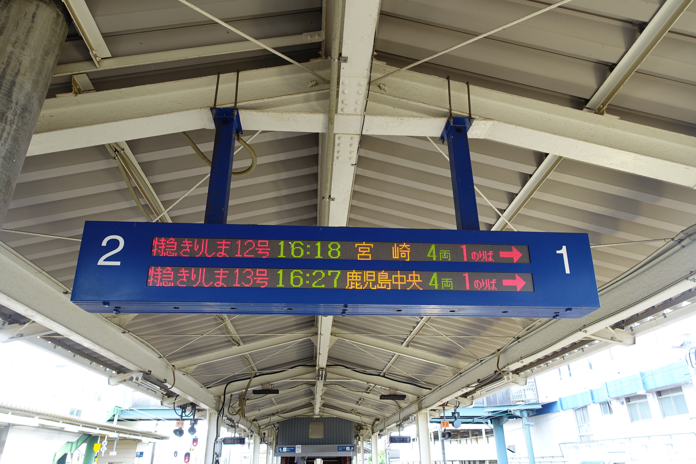 南宮崎から次の宮崎まで、 16時18分特急きりしまに乗車します。実は、宮崎空港〜 南宮崎〜宮崎間は普通乗車券だけで特急自由席に乗車出来ます。 約3分程乗車して宮崎に到着しました。