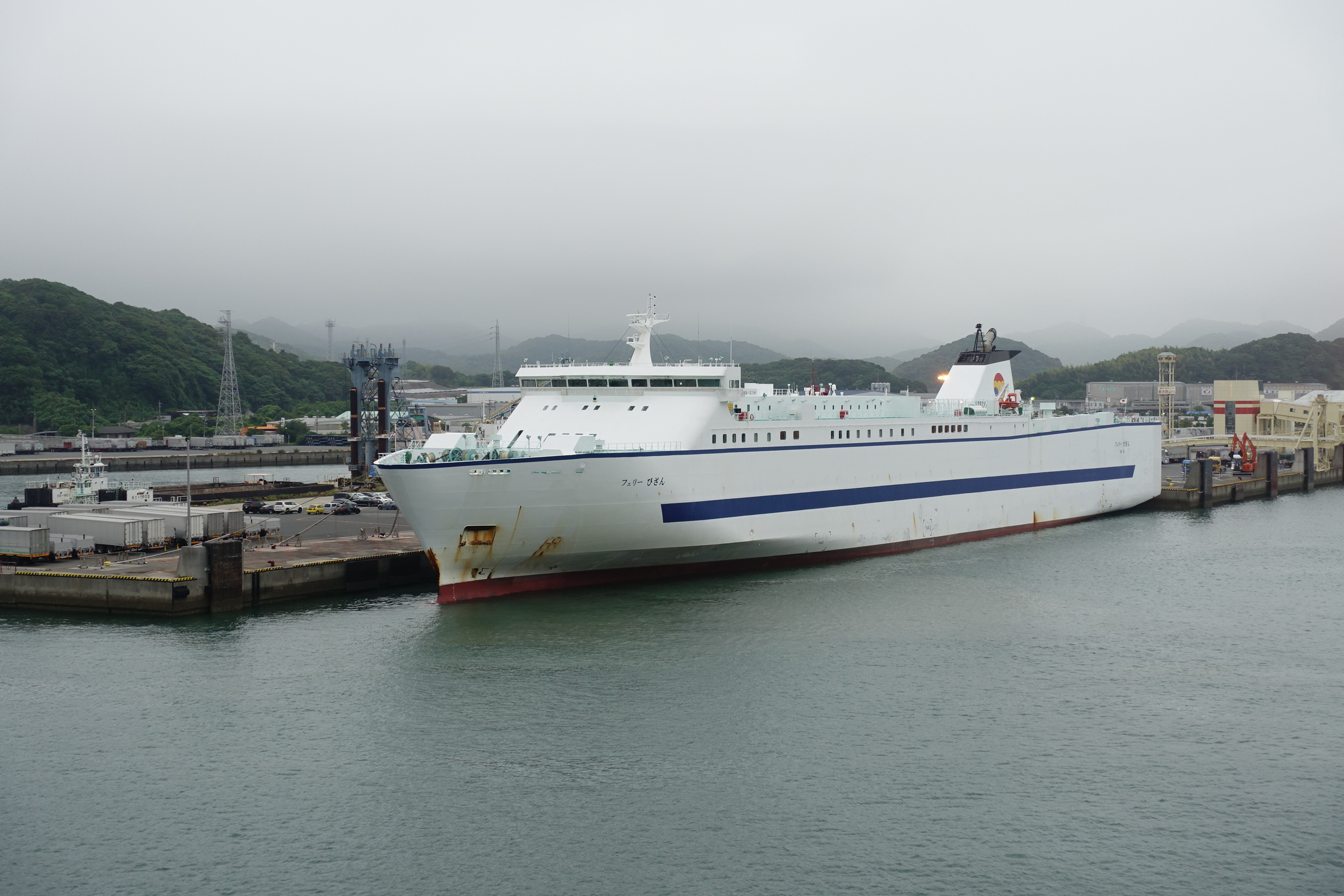 しかし宮崎カーフェリーの同クラス・ドミトリー(2等寝台)は15,740円(ネット割引)なので、個人的には非常に安く感じます。乗船手続後、今回乗船するいずみを撮影します。